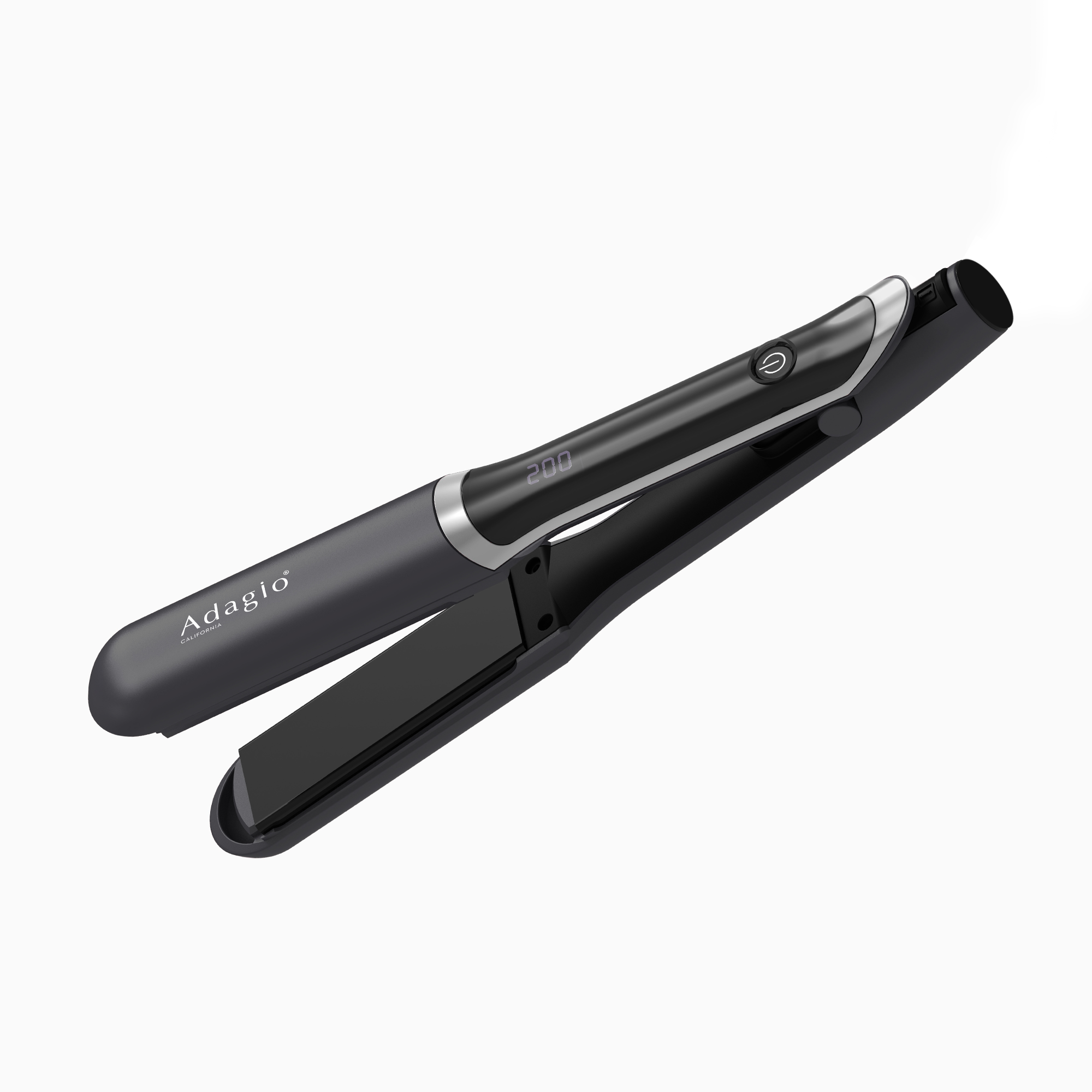 The Adagio Extra Wide Ceramic Flat Iron, equipped with premium 1.25” ceramic plates, effortlessly smooths and straightens all hair types in a matter of minutes. Engineered for ultimate convenience, it heats up swiftly and evenly, delivering a sleek, flawless finish with reduced frizz, making it perfect for everyday use.