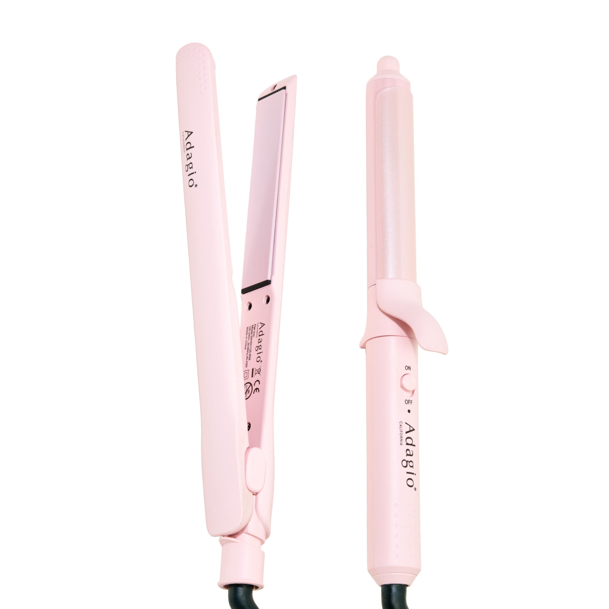 The Adagio Flat Iron and Curling Wand bundle is the perfect styling set. The Round Brush equipped with a ceramic-coated barrel, glides through the hair to create volume, bounce, and movement, while smoothing the hair and removing frizz. Using advanced ionic heat technologies, it protects your hair from excessive heat damage. The Adagio California Ceramic Flat Iron is an essential hair straightener designed with premium floating ceramic plates that offer a sleek, snag-free, smoothing, and shine-enhancing experience with each pass. Infrared technology penetrates hair with gentle wavelengths that help protect hair from unnecessary damage, minimize moisture loss, preserve natural oils, and deliver long-lasting, smooth, shiny and frizz-free results each time.
